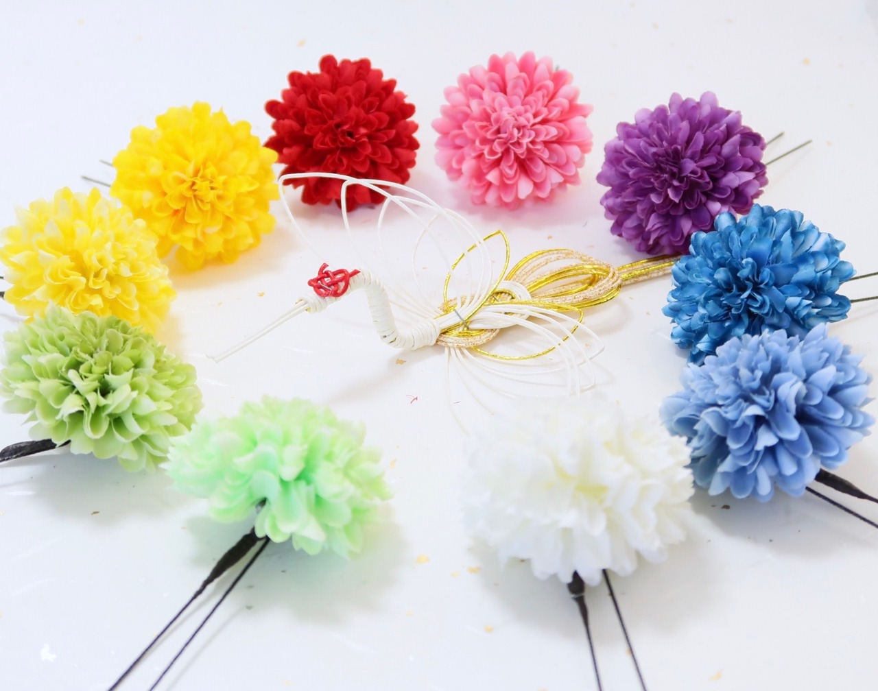 パーティのゲストや、和装でシンプルな髪飾りにしたい時はマムの飾りだけでも華やかになります。